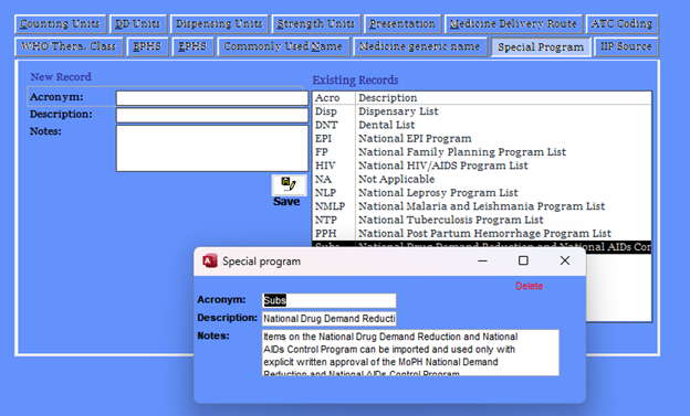 ✔ Classified medicines into categories (Essential Medicines List (EML), Licensed Medicines List (LML), Controlled Substances, Over-the-Counter Medicines, Special Program Lists).