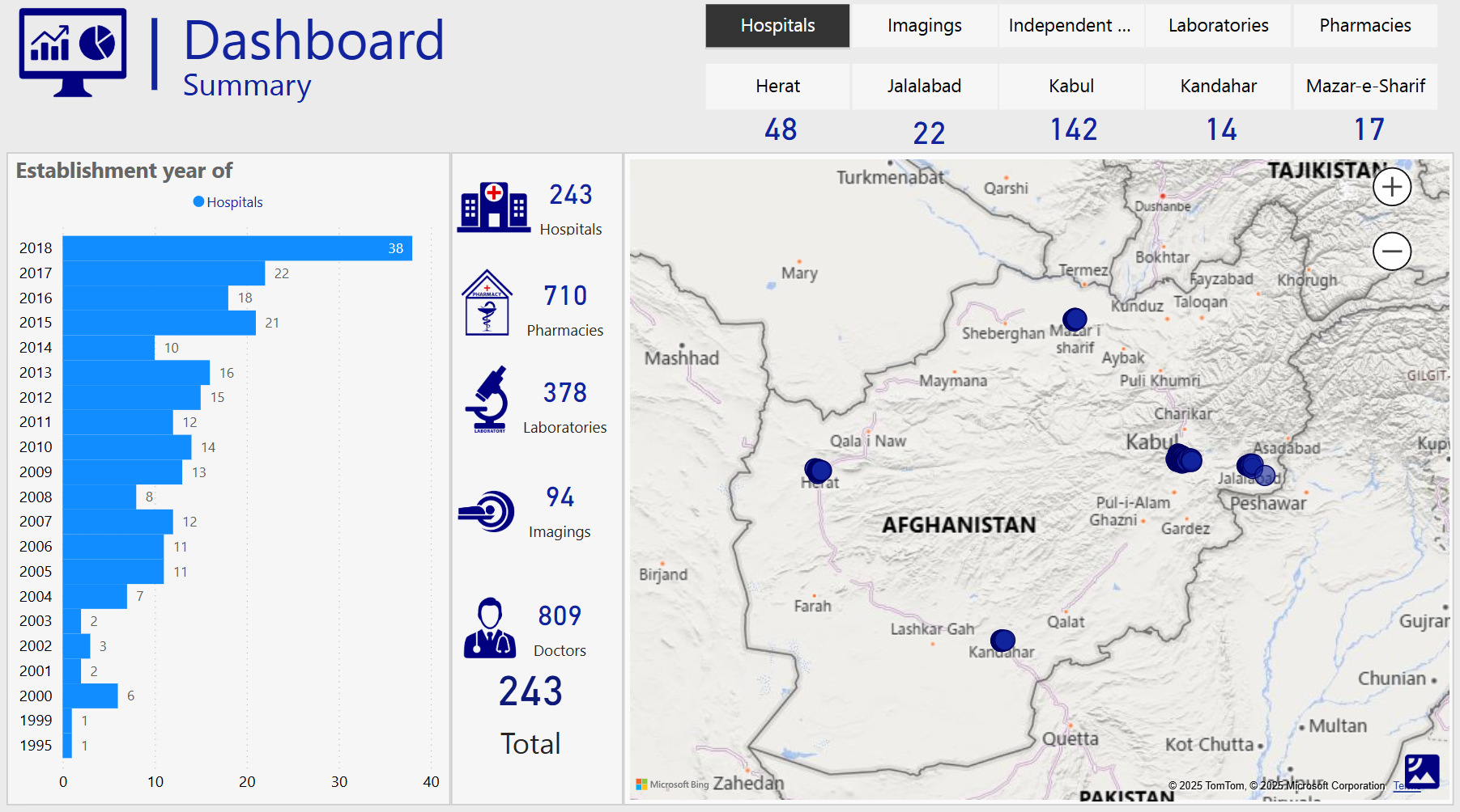 Developed an interactive Power BI solution that leverages data from thousands of hospitals, pharmacies, and other private-sector health providers to help end users analyze and uncover investment opportunities. The dashboard enables stakeholders to drill down into key metrics by filtering data based on location, facility type, specialization, human resource size, hospital bed capacity, and service availability. The project focused on five major provinces and includes sub-dashboards for hospitals, pharmacies, laboratories, imaging facilities, and independent doctors. The primary objective was to identify and quantify investment opportunities in the private health sector and provide investors with a tool to efficiently explore these opportunities.