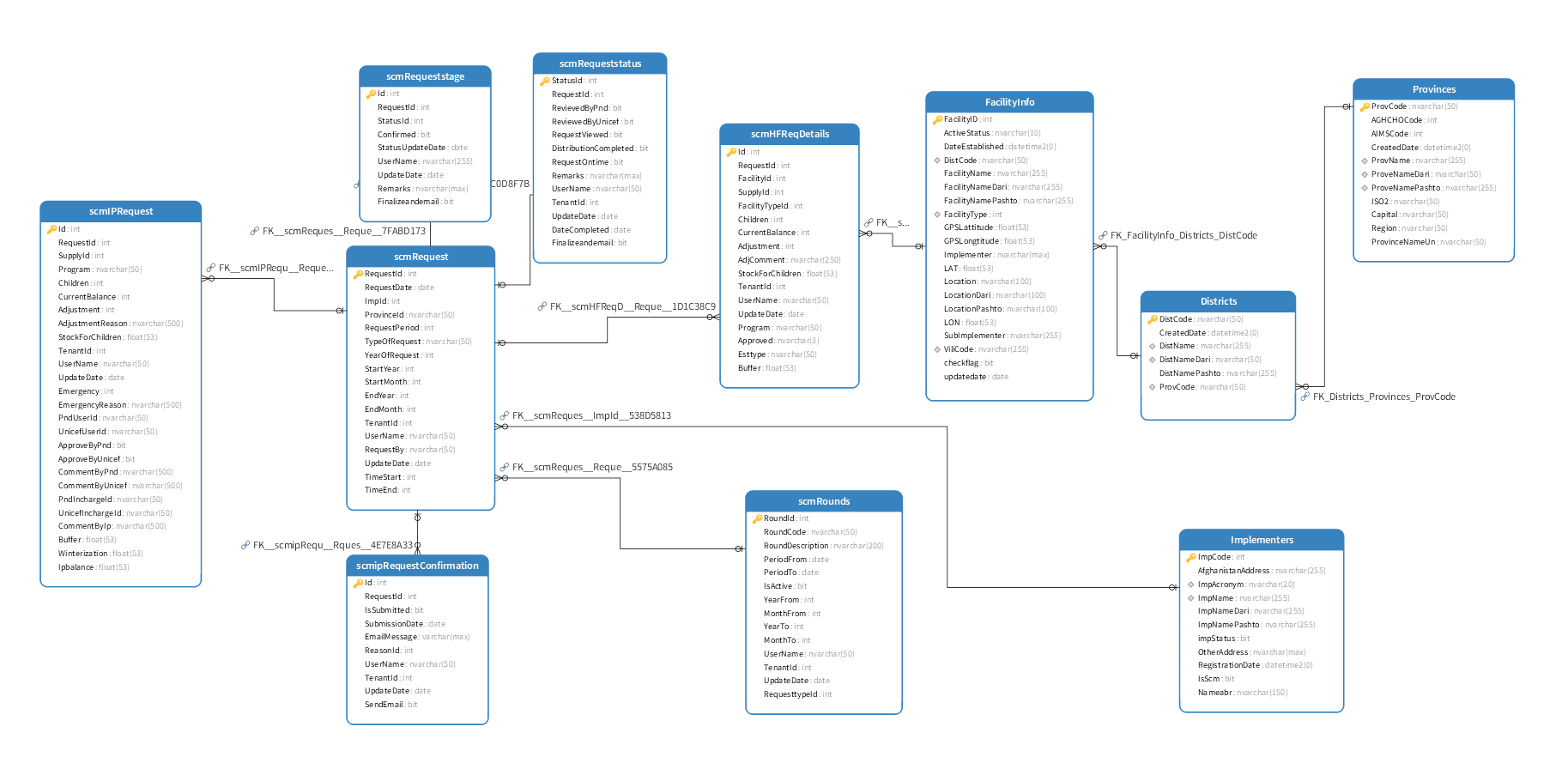 | Supply Chain System | scmRequest, scmIPRequest, scmipRequestConfirmation, scmRequeststage, scmHFReqDetails, scmRequeststatus |