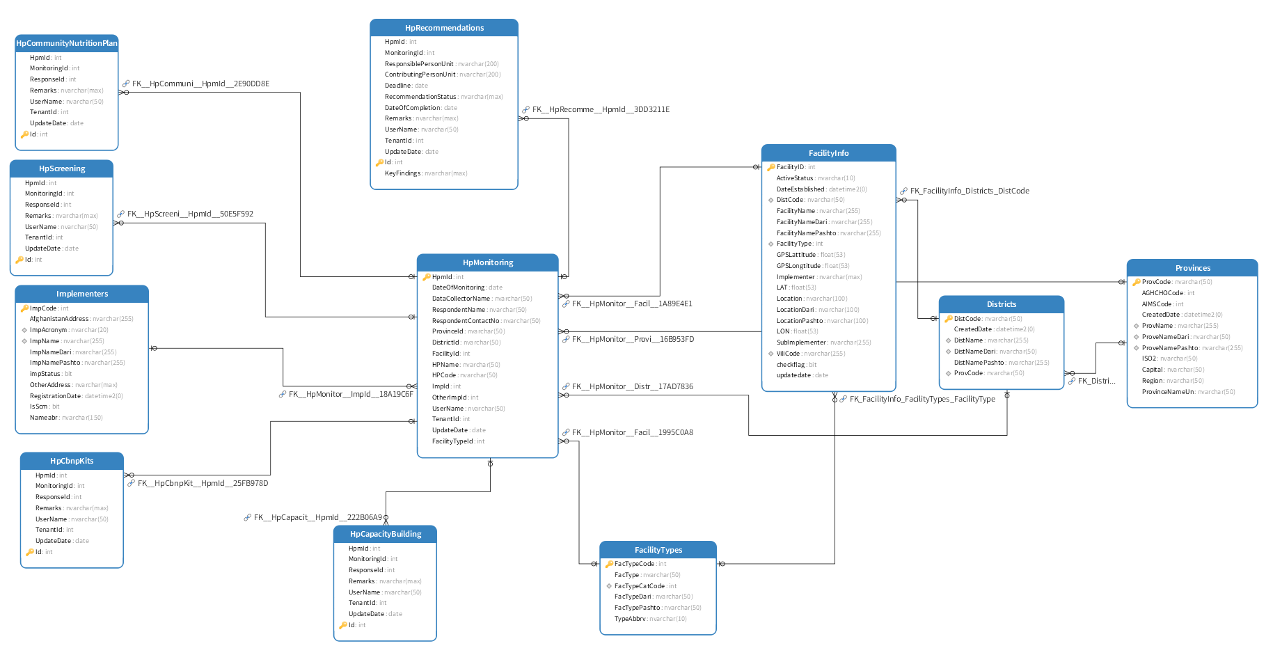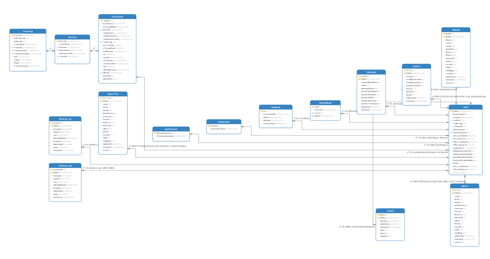 I designed and developed this SQL Server database for capturing, storing, and processing nutrition services data. This database serves as a centralized repository for over 5,000 health facilities, enabling structured data collection, validation, and analysis for health managers at all levels—from local clinics to national decision-makers.